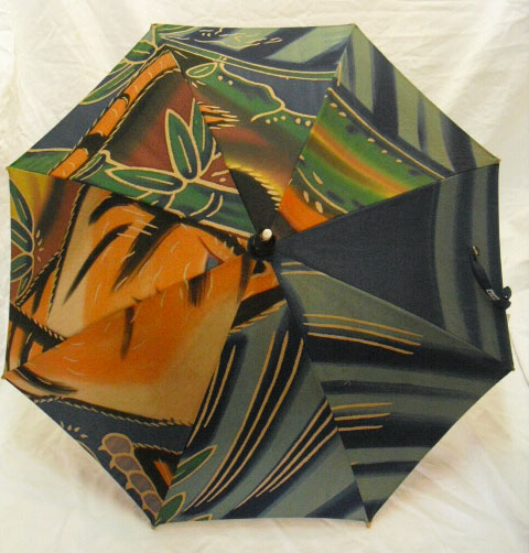 端午の節句に飾る武者絵幟旗を柿渋染めにして日傘へリメイクしました。