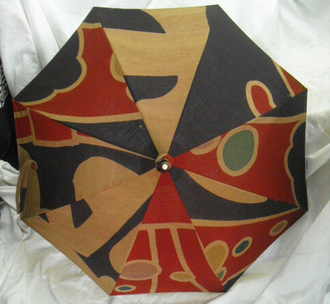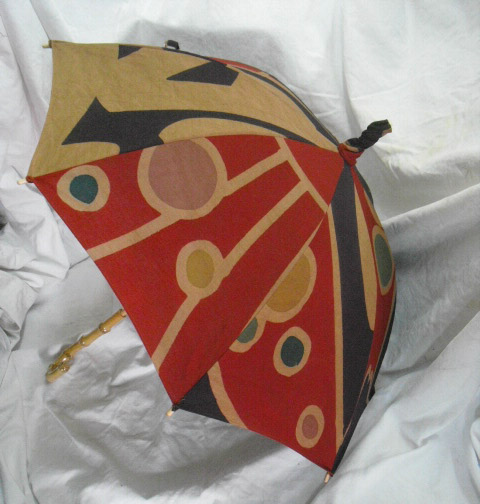 大漁旗を柿渋染めにして日傘へリメイクしました。