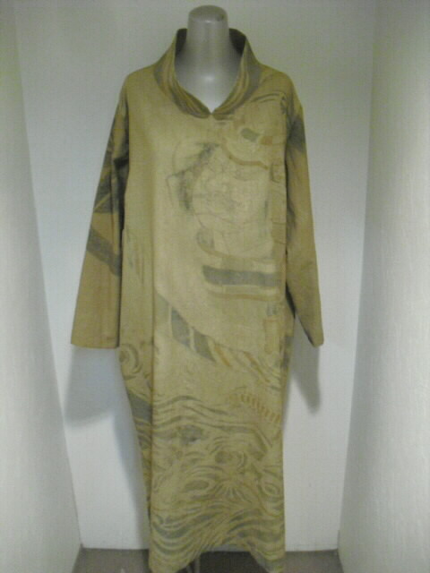 柿渋で染めた幟旗で作った個性輝くワンピースです。