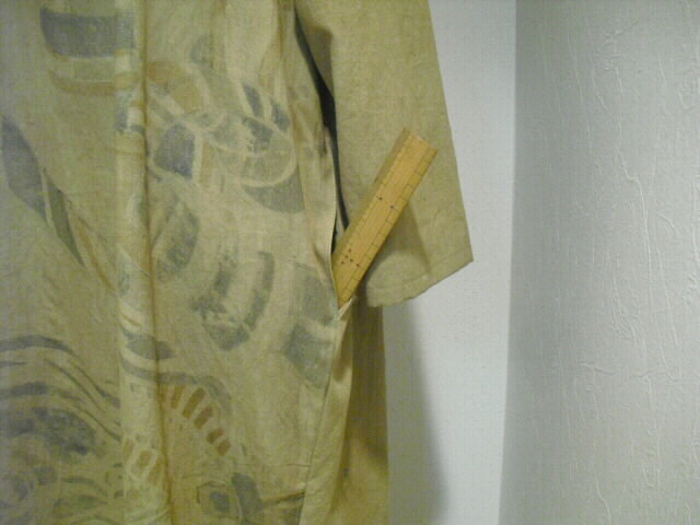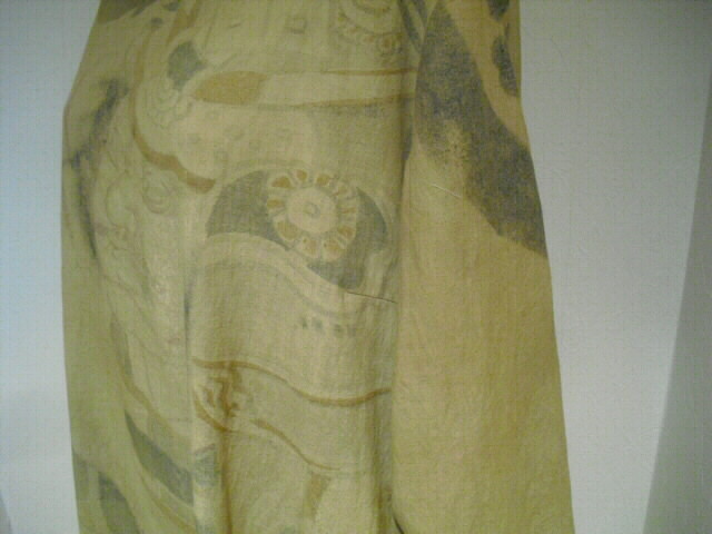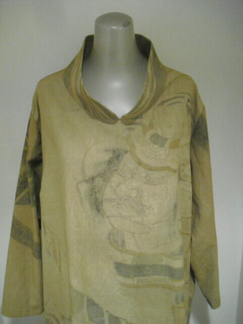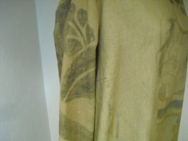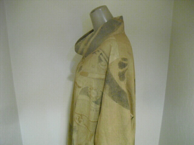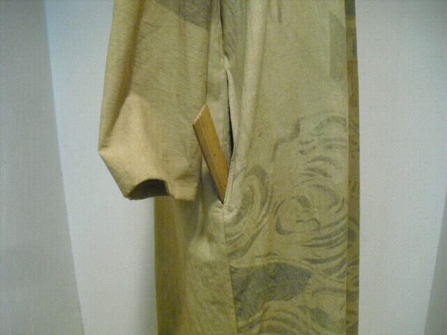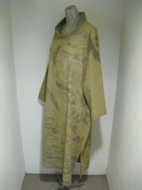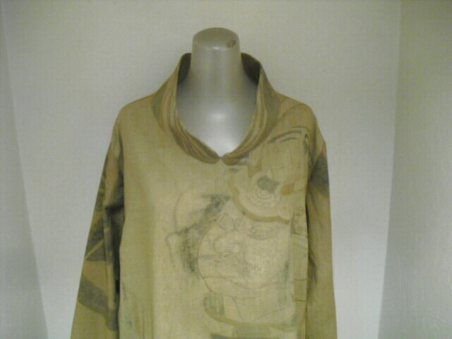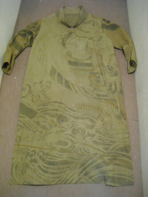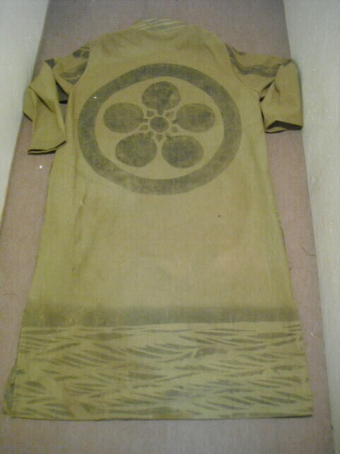 一見して幟旗とは分かりませんが、うっすらと見える武者の顔と後の家紋が、このお洋服のポイントです。