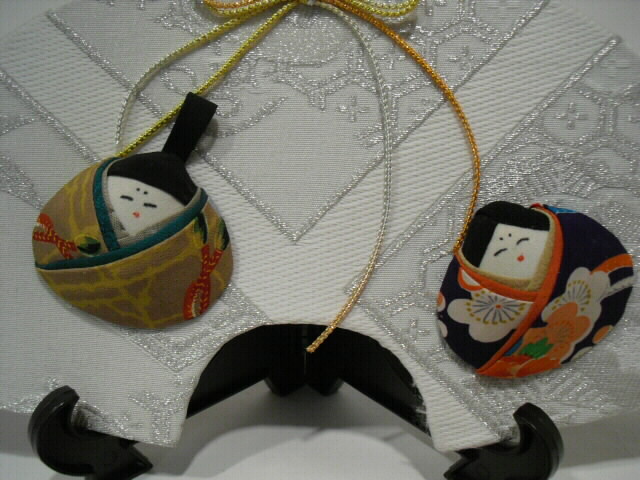 大き目のハマグリに着物地を貼りあわせ、お雛さま作っています。