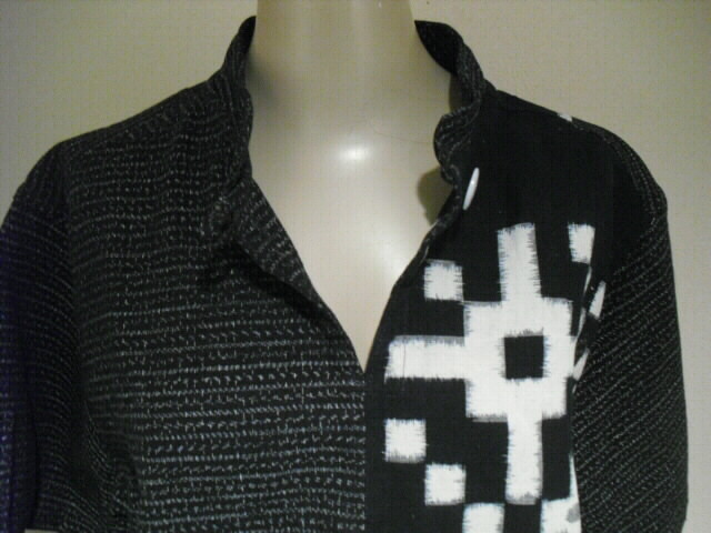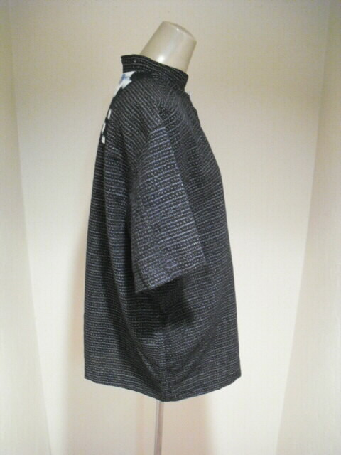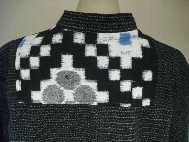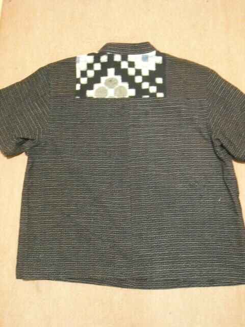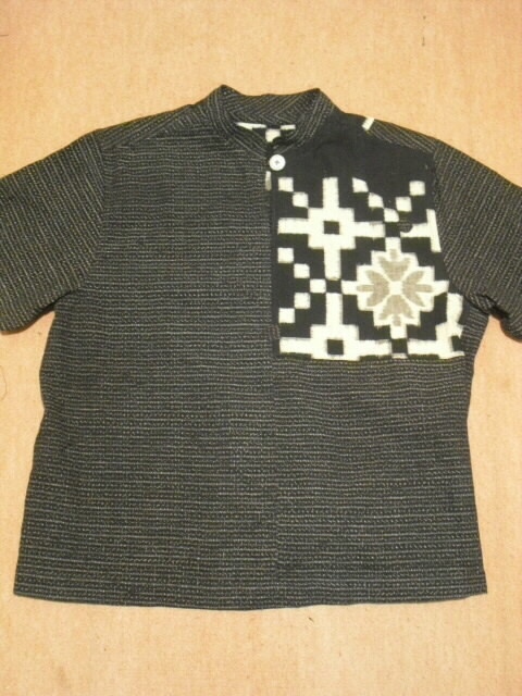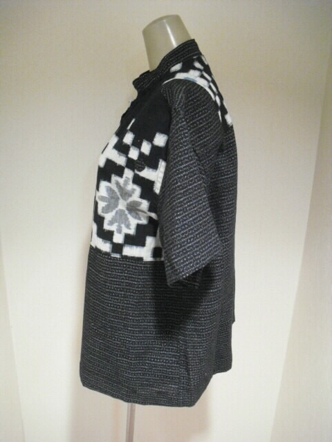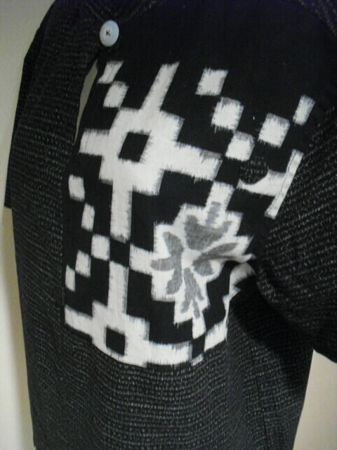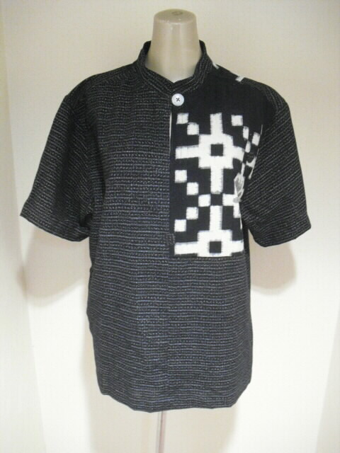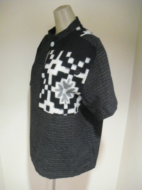 書生絣と型染めを組み合わせて仕立てた半袖のブラウスです。