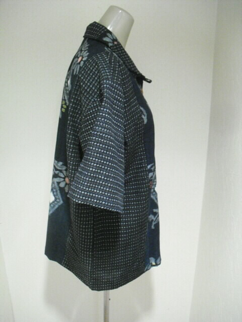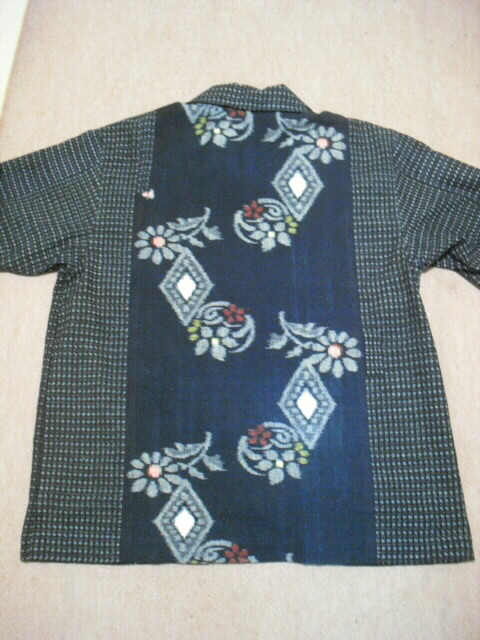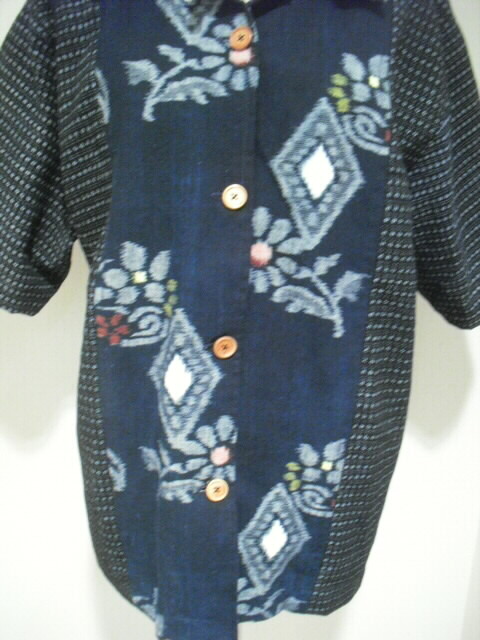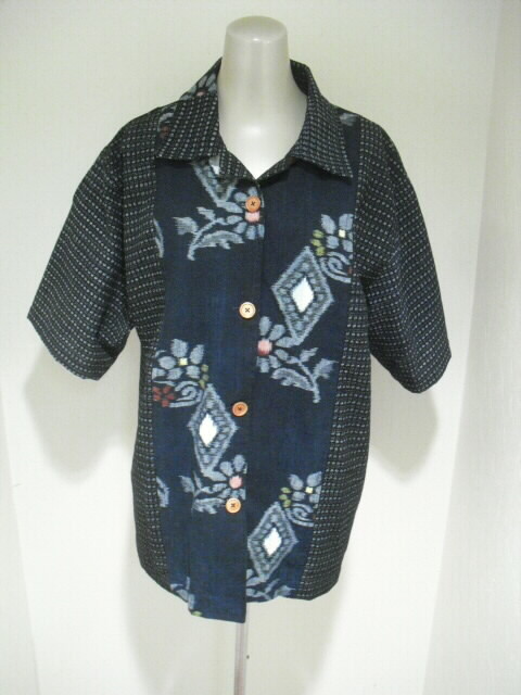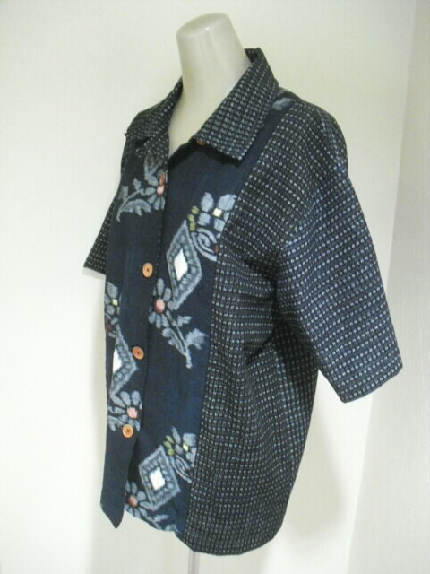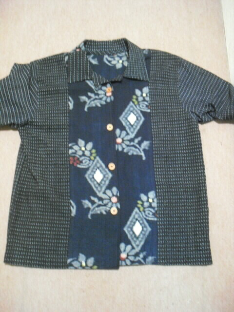 絣を組み合わせて仕立てた半袖のブラウスです。