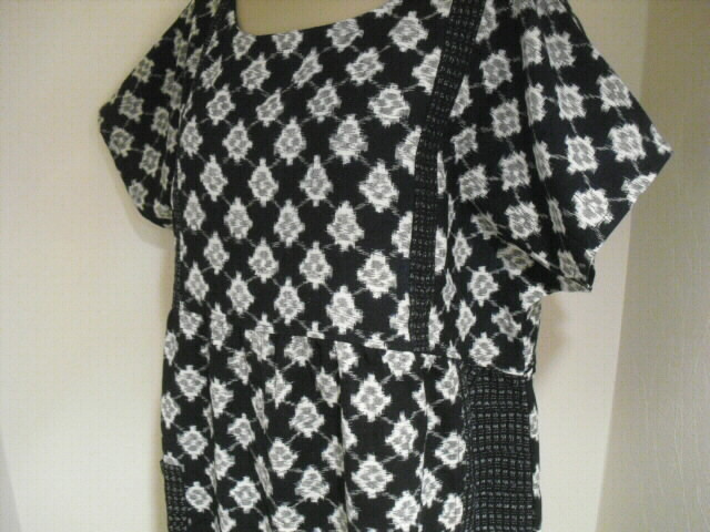 古布の絣(かすり)を組合わせて作ったワンピースです。