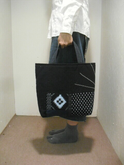 絣を組み合わせて作った一点モノの手さげバッグです。