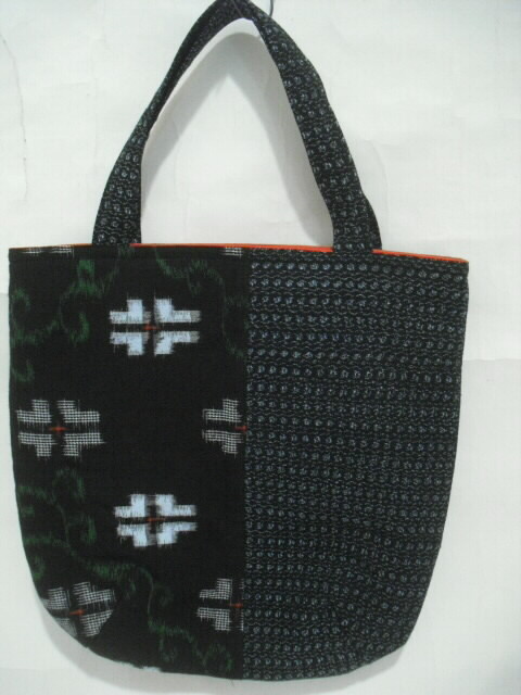 絣を組み合わせて作った一点モノの手さげバッグです。