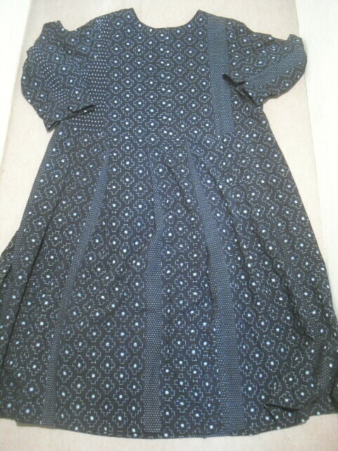 古布の絣(かすり)を組合わせて作った長袖ワンピースです。