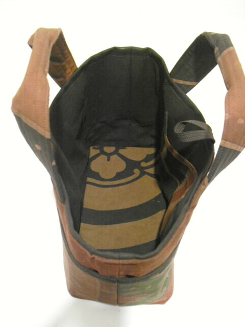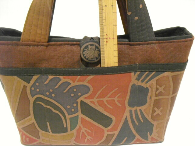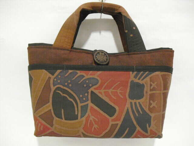 古布の武者絵幟旗を染色してバックへリメイクした作品です。