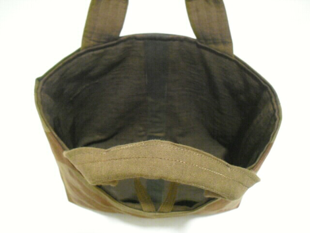 素材・・・バック本体、持ち手:古布 武者絵のぼり旗(綿) サイズ・・・幅29cm×高さ25cm×底幅11cm持ち手・・・長さ35cm特徴・・・古布の武者絵幟旗を染色して手さげバックへリメイクしました。古布の幟旗は大変、希少価値の高い素材です。表の片面には「兎」と「馬」の絵柄の和布をパッチしました。とても素敵なポイントになっています。表と裏は、違った絵柄になっていますので両面で違う表情も楽しめます。バッグ用の硬めの芯を使っていますのでカッチリとしっかりしています。開け口はボタンで留められます。木のボタンがバッグにとてもマッチしています。開け口は大きく開きますので大きな荷物も持ち運びできます。中には深さ15cmのポケットが2個付いています。ちょっとしたお出かけやご旅行に・・・周りの視線を惹きつける個性的なデザイン♪お洒落な手づくり一点モノのバックです。価格 9,500円