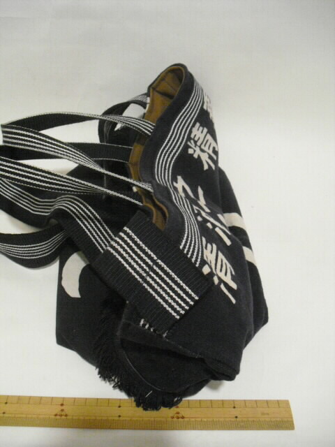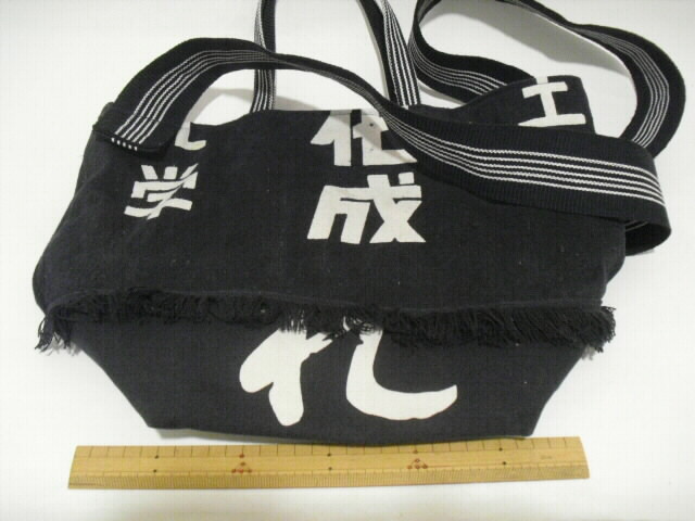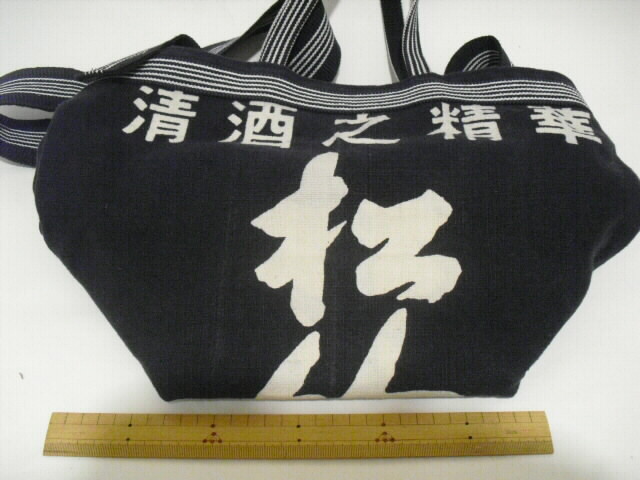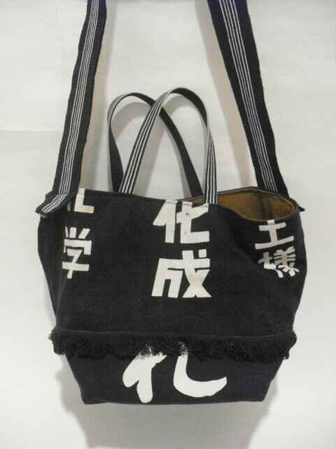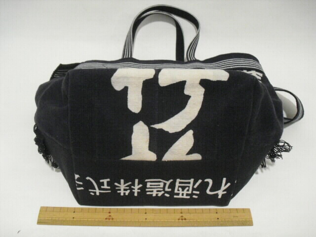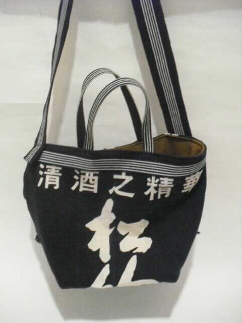 サイズ・・・幅 下部20cm〜上部38cm×高さ 26cm×底幅21cm持ち手・・・ 手さげ紐 幅1.7cm、長さ 35cm、 肩掛け紐 幅5.3cm、長さ 113cm、重さ・・・410g特徴・・・職人さんや酒屋さんが使っている懐かしの藍色の「帆前掛け」。これを加工して、一点モノのバッグをつくりました。前掛けのロゴを生かすように丁寧に裁断、縫製したオンリーワンのハンドメイドです。丈夫で、使い込むごとに生地が馴染んで、あなただけの風合いが生まれます。