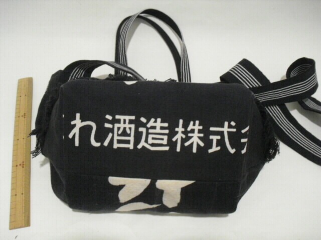 職人さんや酒屋さんが使っている懐かしの藍色の「帆前掛け」。これを加工して、一点モノのバッグをつくりました。短い手提げ紐(長さ 35cm)、長い肩掛け紐(長さ 113cm)の2本の紐を付けています。トートーバッグとしてはなく、ショルダーバッグとしてもお使いいただけます。前掛けのロゴを生かすように丁寧に裁断、縫製したオンリーワンのハンドメイドです。