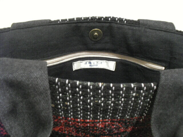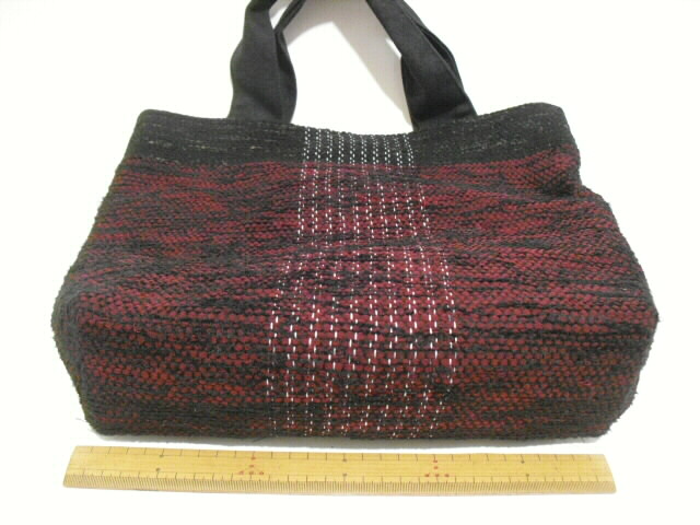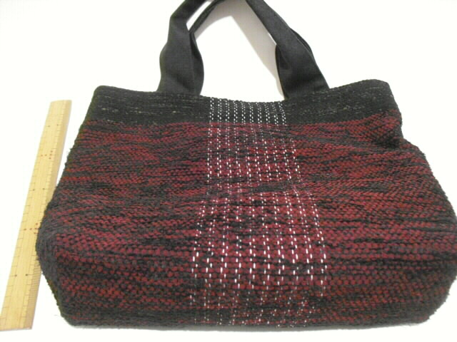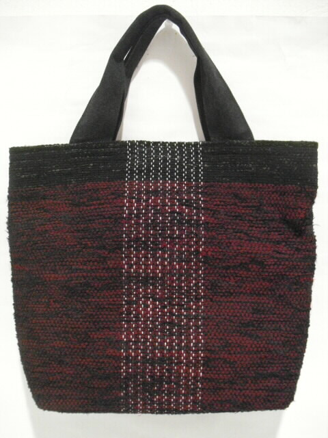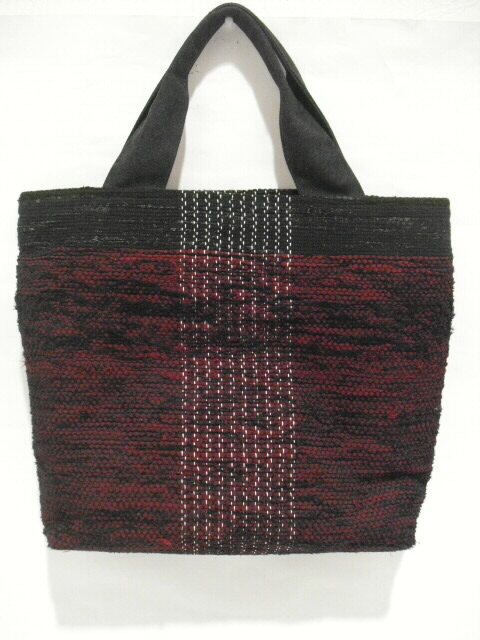 センターのみ経糸を白に変えて織りあげた個性的なバッグになりました。