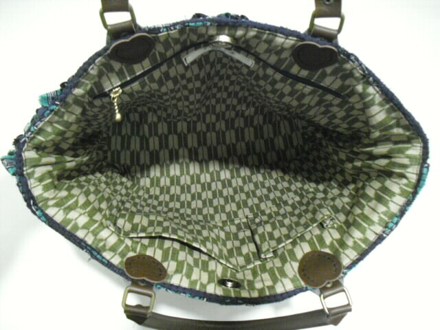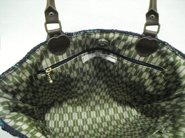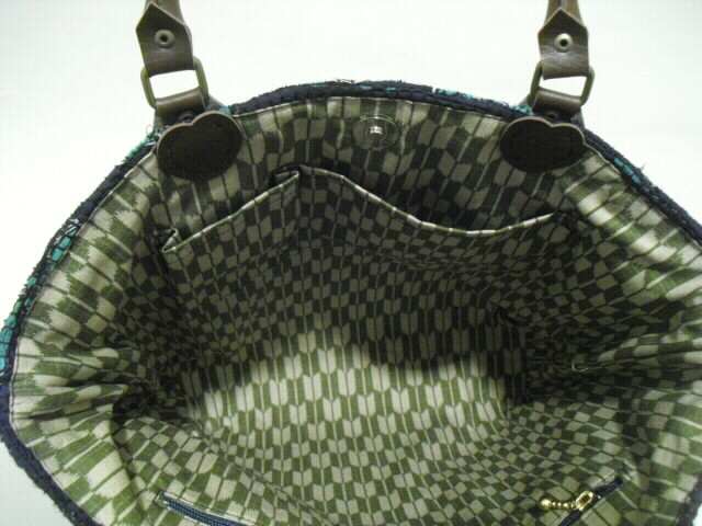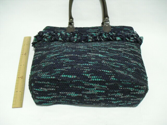 裂き織り布には、厚めの芯が張ってありますのでしっかりした感じのバッグになっています。