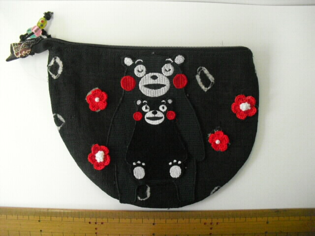 人気のくまモンの布・ワッペンをポーチに付けました♪