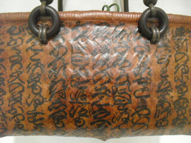 こちらの作品は漢字が描かれた和紙(浄瑠璃本)を貼り合わせて作りました。