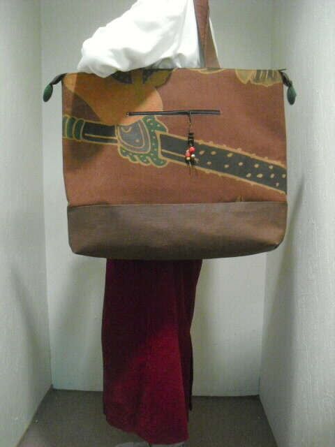 素材・・・バック本体、持ち手:古布 武者絵のぼり旗(綿)