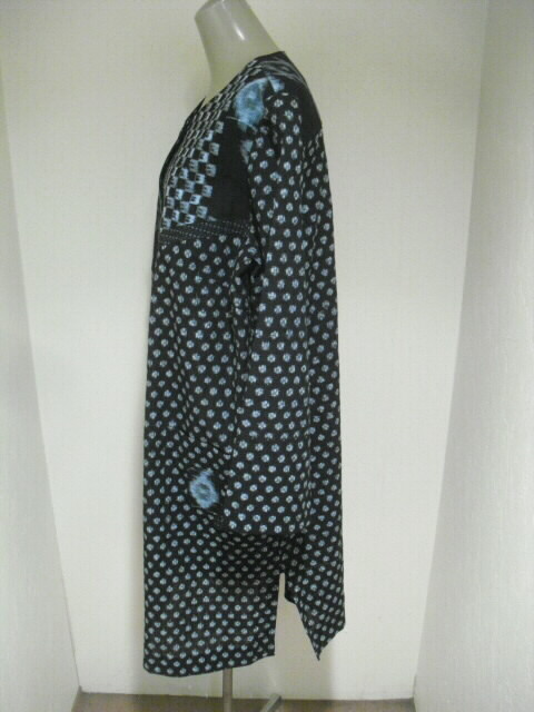 前は胸の部分に斜めで切り替えて絵絣を入れました。