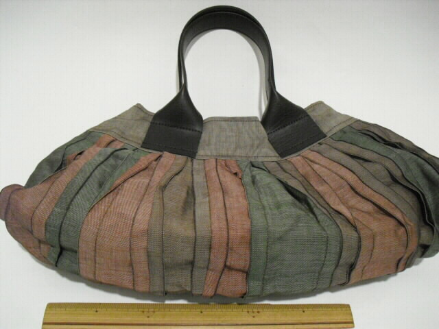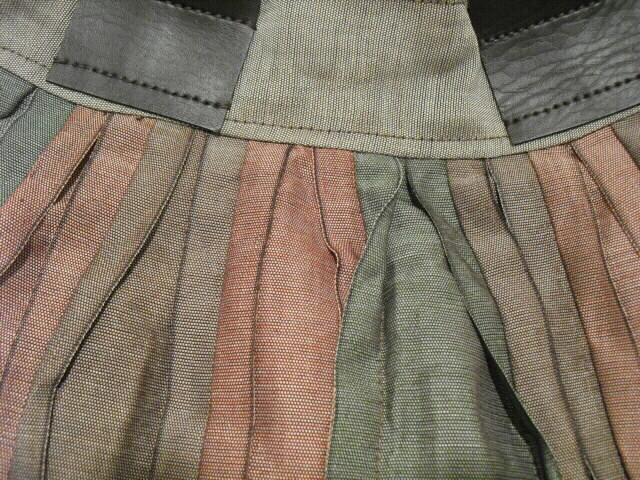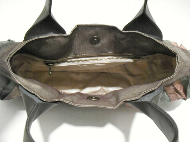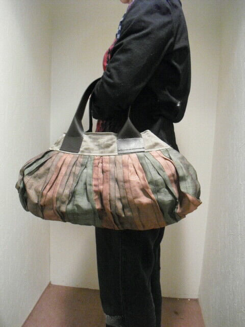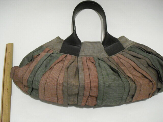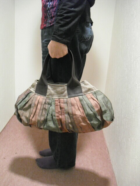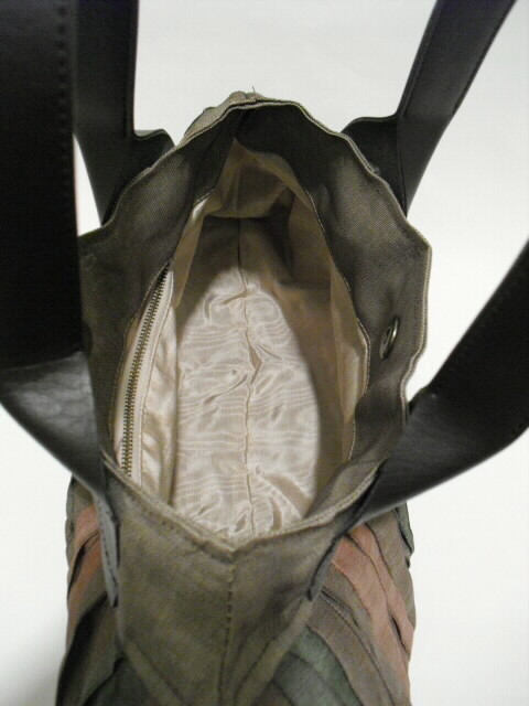 素材・・・畳縁(綿/ポリエチレン/ポリエステル)サイズ・・・幅40cm×高さ21cm×底幅0cm(マチなし)持ち手・・・合皮 長さ39cm特徴・・・今、大人気の畳縁(たたみべり)を使ったバッグです。人気の秘密は、畳縁が持つ織り柄の美しさ、しかも丈夫で軽いことです。帯状の畳縁をフリルにして縫い合せたことで、光沢と影のコントラストがくっきり。この艶やかな発色と光沢が素敵な陰影を生み出しています。個性的かつシックなデザインの畳縁バッグ。開け口は素早く開閉ができるマグネットタイプです。中には深さ14cm×幅15cmのファスナーポケットが付いています。畳縁はその用途から大変丈夫な素材で作られていますがコットンやナイロンなどと比べても驚くほどの軽さです。汚れもほとんど目立ちません。派手さを抑えた日本の美を彩る畳縁バッグは洋服はもちろん着物、浴衣にも合います♪個性的なデザインと軽さ、独特の色味をお楽しみください。