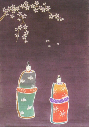 お雛さま(中)   大きさ: 横43cm×縦63cm   素材: 麻 100%