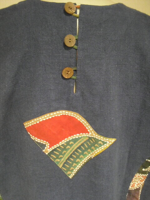 後も背中と右側に武者絵のぼりをパッチして刺し子をしています。 Aラインシルエットでふんわり可愛く楽ちんなチュニック♪