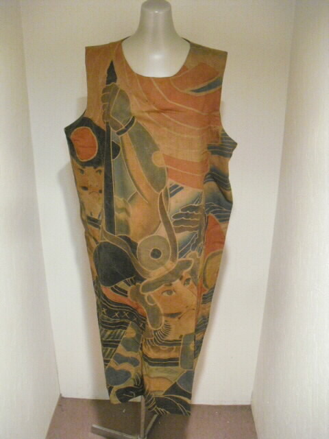 柿渋で染めた古布の「武者絵幟」で作ったオシャレなジャンパースカートです。 とても良い色合いに染まっています。