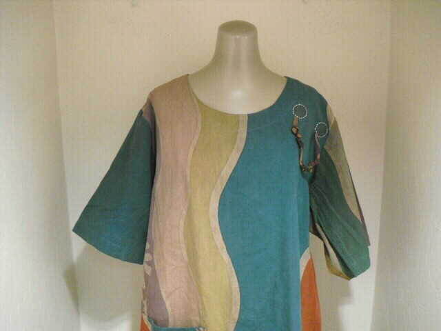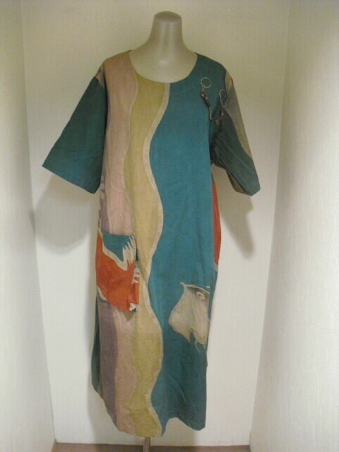 裏無しになっていますが生地がしっかりしていますので暖かい季節は中に半袖Tシャツ1枚で、肌寒い季節は中に長袖のTシャツや薄手のセーターを着て長い期間着ていただけるワンピースです。 |