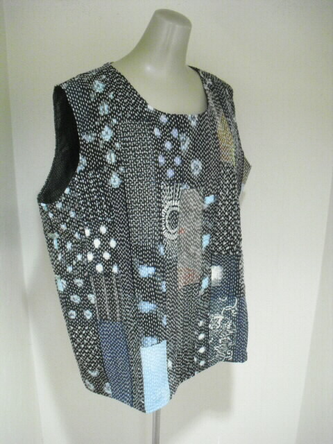 大島の光沢と刺し子が特徴的なリバーシブルベスト♪ 周りの視線を惹きつけること間違いなし。 素敵なこのお洋服であなたの個性を輝かせてください。 |