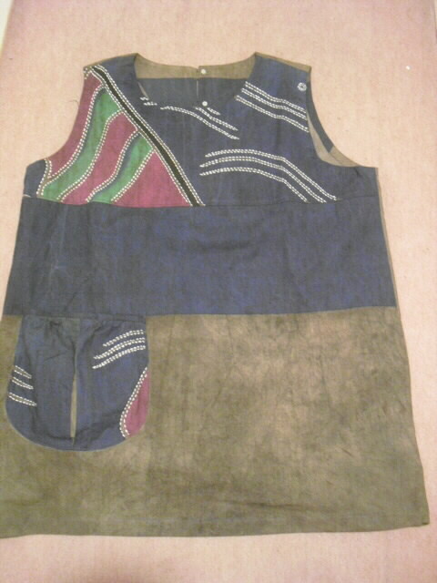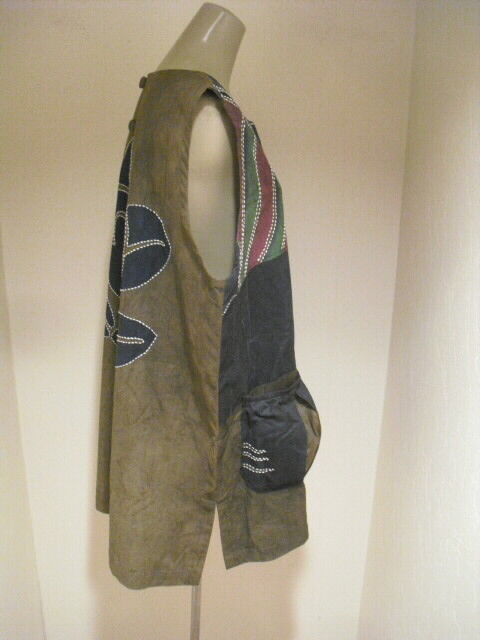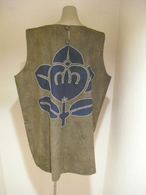 武者絵のぼりに刺し子を施してノースリーブチュニックへリメイクしました。