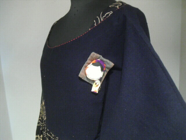 前にはアクセントに「おかめ」のブローチを付けました。