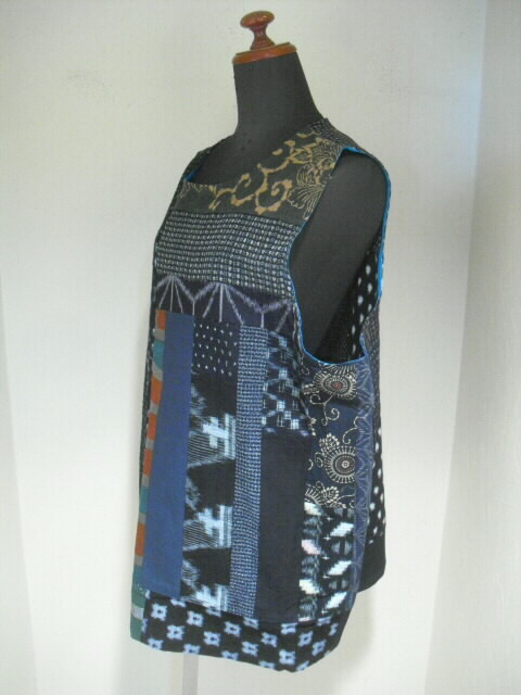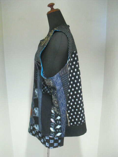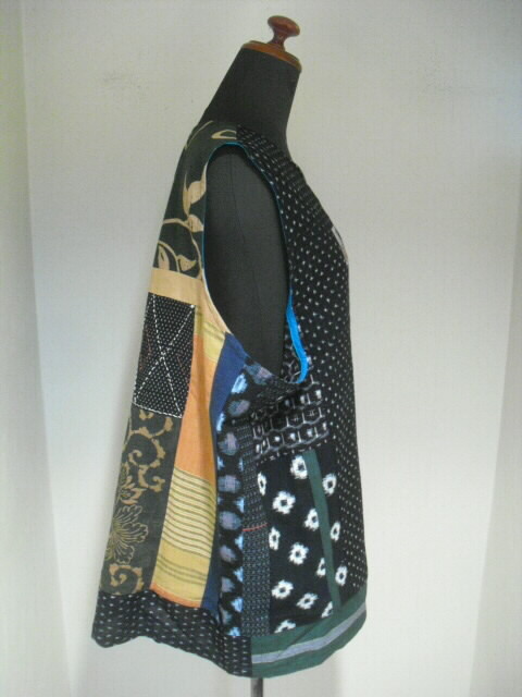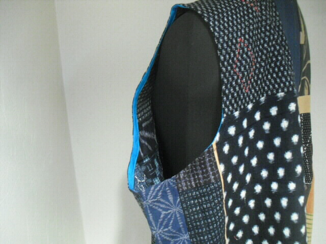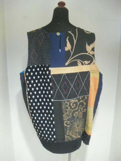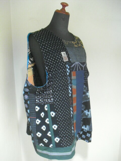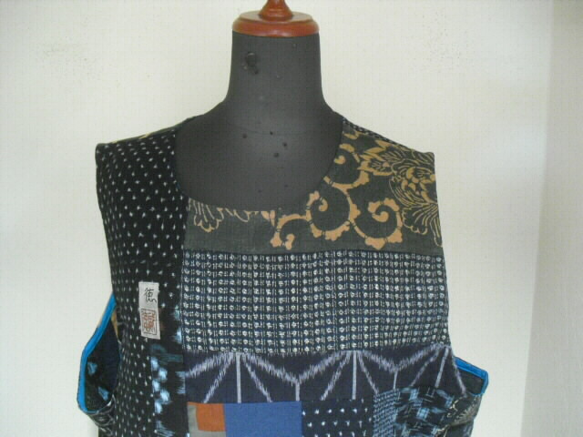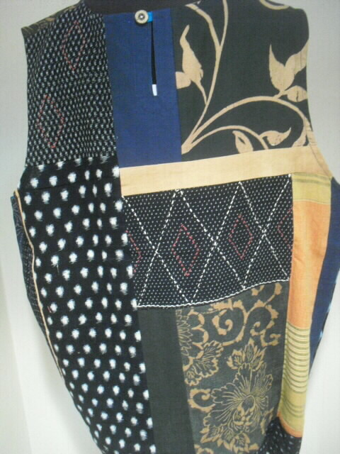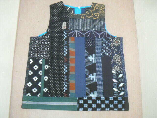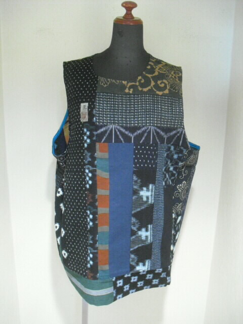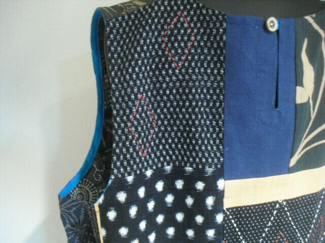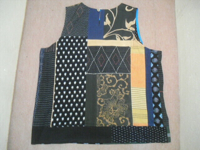 色合い、絵柄が違う布の組合せで遊びごごろタップリのベストが出来ました♪
