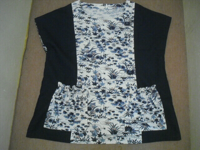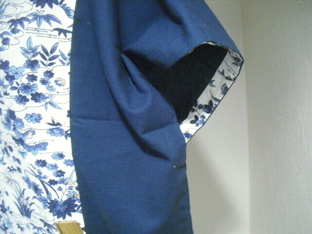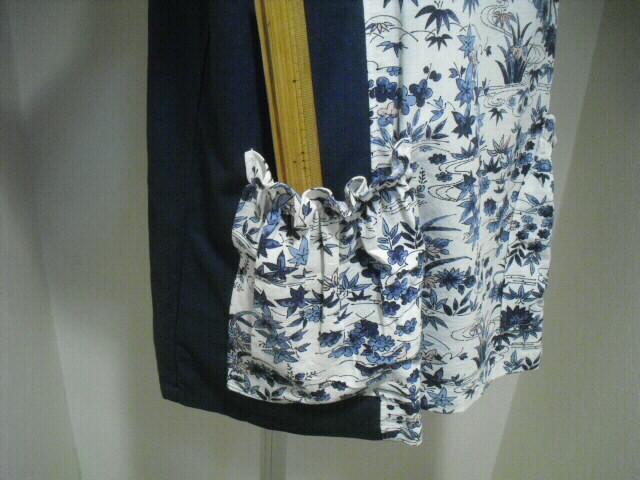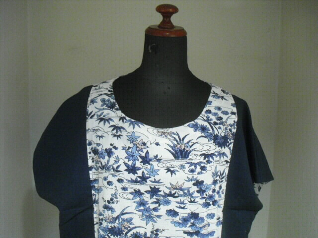 前後とも真中に着物を入れ両脇に紺色の綿生地を入れています。