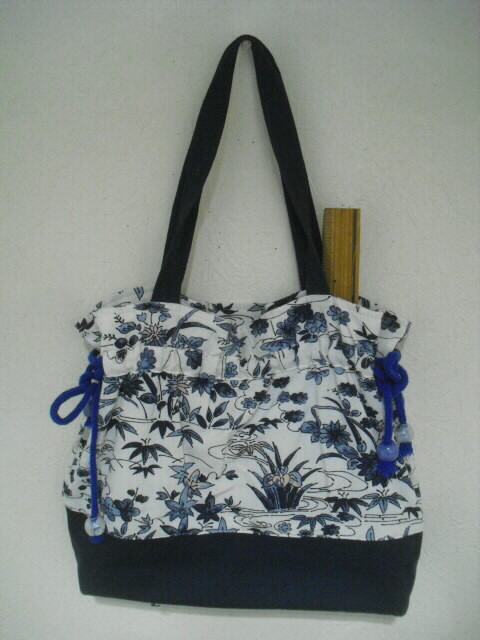 絵柄と同じ紺色で派手さはありませんが白地の着物とのコントラストが素敵です。