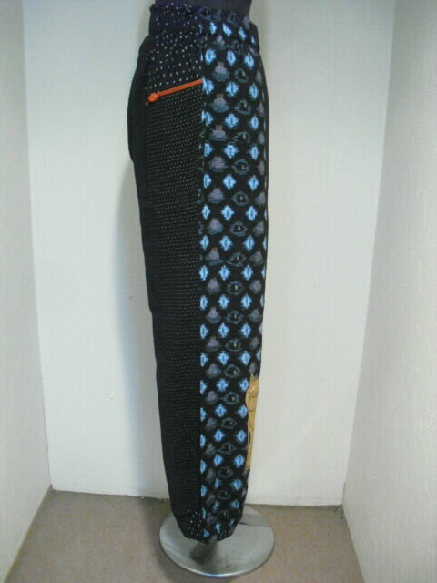 前後共に藍染無地を使い右サイドに2種類の絣、