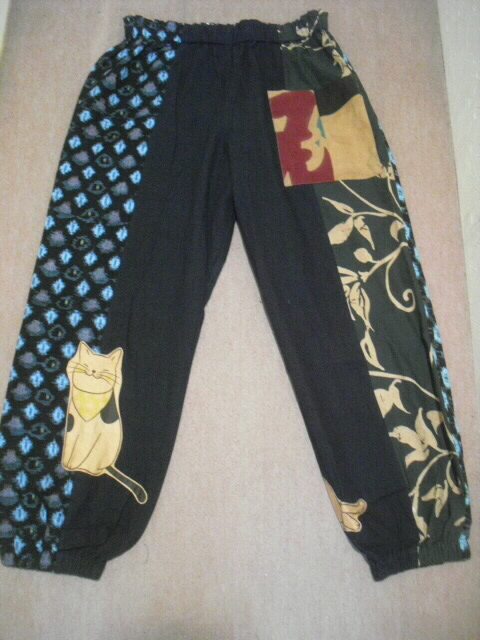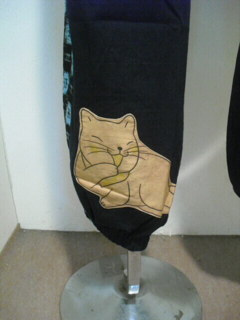 ネコちゃんは猫柄の綿生地をカットして柿渋染めしています。