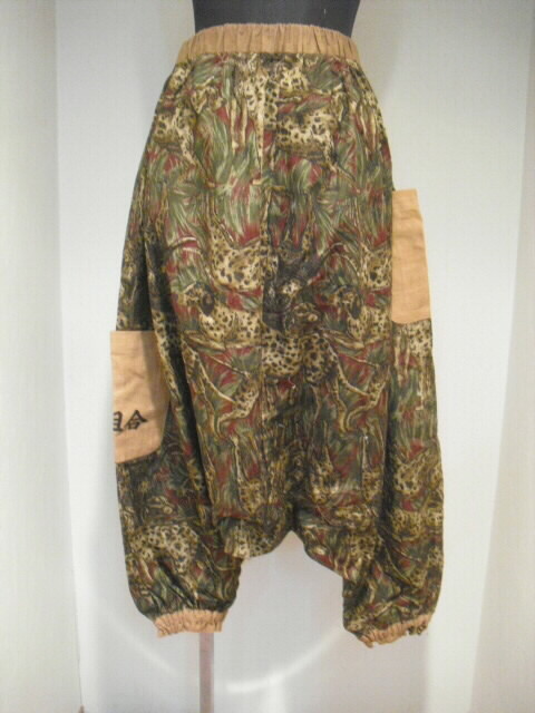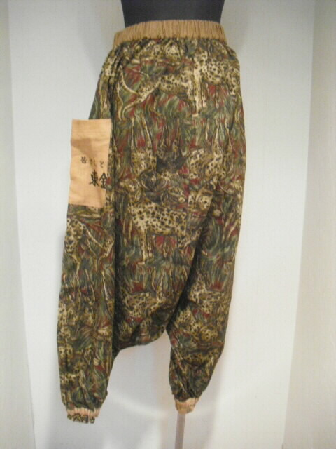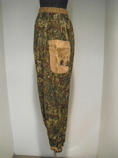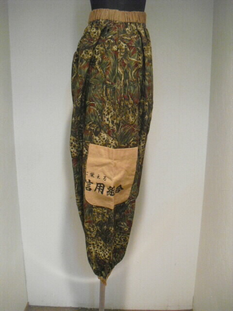柿渋染めした日本手ぬぐいをと綿の生地を組み合わせて作った個性輝くパンツです。