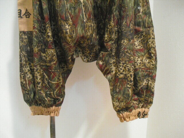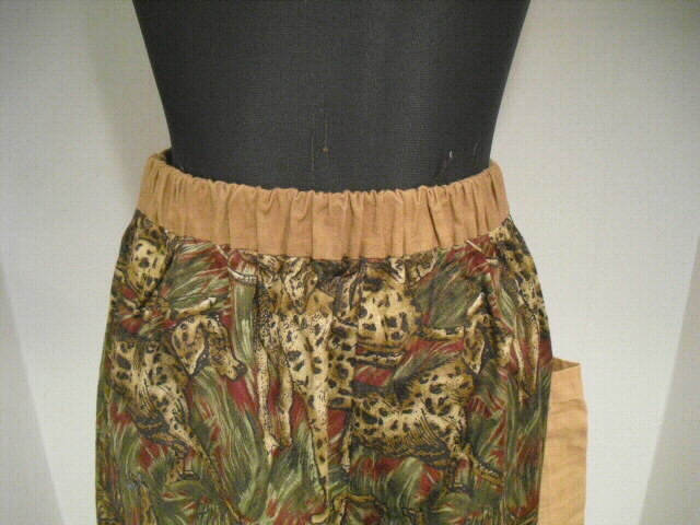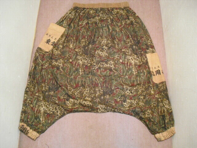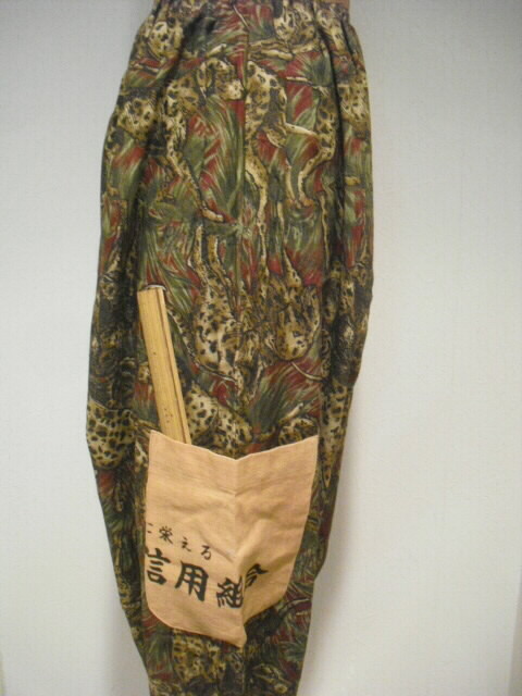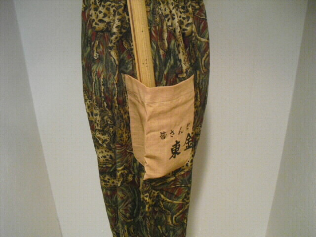 ポケット、裾とウェスト部分に日本手ぬぐいを使っています。