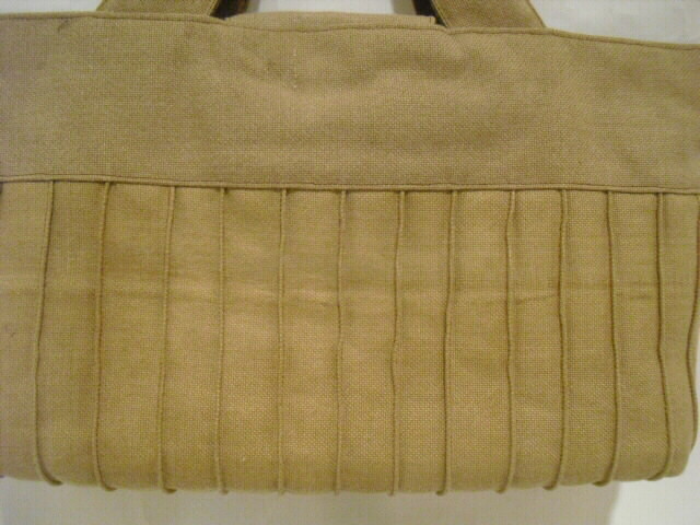 状態の良い醤油袋を使い、細かくピンタックして平面的な布に立体的に装飾しました。