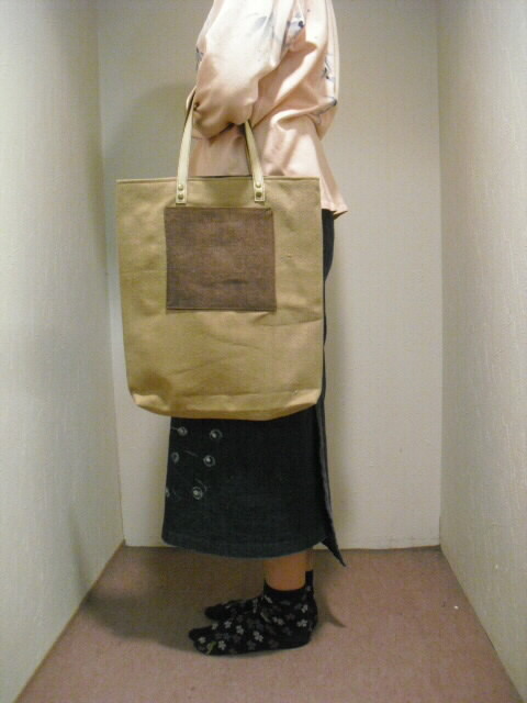 古布の酒袋と醤油袋を組み合わせて作ったトートーバッグです。