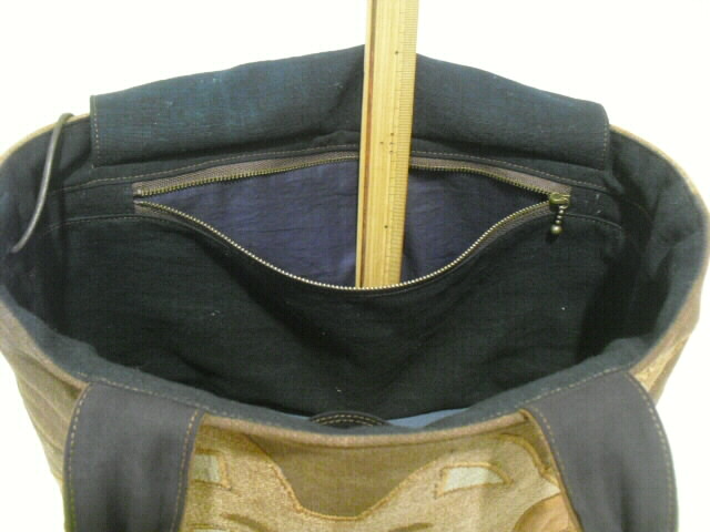 ポケットは中に深さ15.5cmの2つのオープンポケット。 「かぶせ布」の内側に深さ19cm