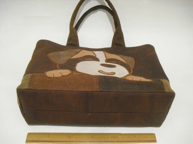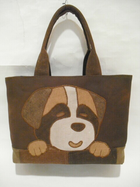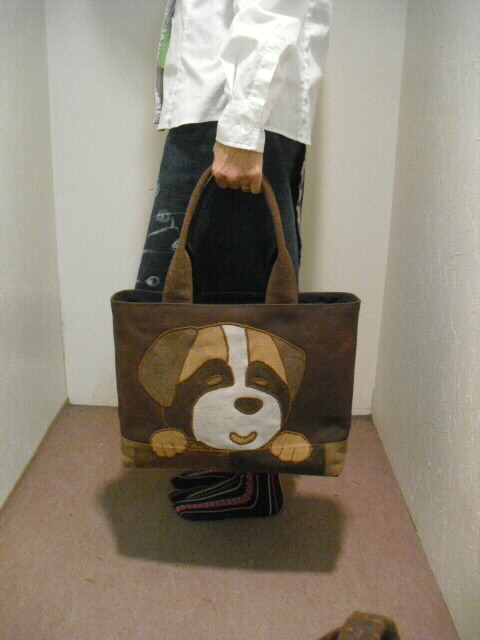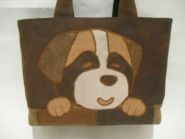 特徴・・・ 酒袋で作った可愛い"ワンちゃんバッグ"です。 前回、好評で直ぐに売り切れましたので再制作しました。 古布の酒袋と醤油袋、柿渋染めした綿生地を組み合わせて作ったバッグです。