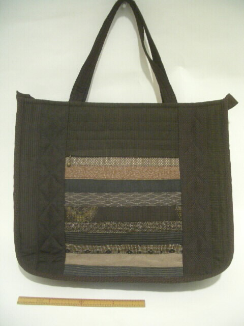 開閉はファスナータイプです。開け口は大きく開きますので収納力もあります。芯は入っていますがふわふわした柔らかい手触りです。折り曲げる事も出来ますのでご旅行時のサブバッグとしても携行できます。ちょっとしたお出かけやご旅行時に・・・高級着物素材『大島』を贅沢に使った周りの視線を惹きつける♪お洒落な手づくり一点モノのバックです。価格 15,500円