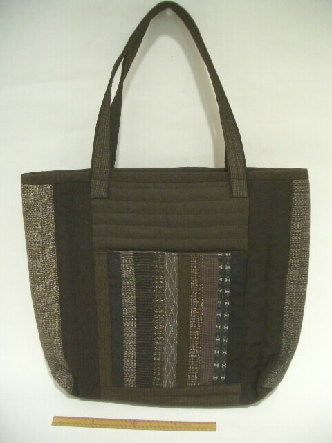 素材・・・ 着物(絹・綿)サイズ・・・幅28cm×高さ30cm×底幅6cm持ち手・・・着物 長さ43cm、幅2cm特徴・・・数種類の着物を使いトートーバッグへリメイクしました。高価な素材を使い、時間をかけて丁寧にお仕立てしました。手のかかったパッチワークで独自のデザインにこだわりながら大島独特の光沢と柄を生かしました。表と裏は、まったく違うデザインにしていますので両面で違う表情も楽しめます。どちらの面を外側にするか悩んでしまいそう! 気分に合わせて使い分けてみて ください♪ポケットは表に口幅17cm、深さ17cmのポケットが1個。中には大小3個のポケットがついています。芯は入っていますがふわふわした柔らかい手触りです。折り曲げる事も出来ますのでご旅行時のサブバッグとしても携行できます。ちょっとしたお出かけやご旅行時に・・・高級着物素材『大島』を贅沢に使った周りの視線を惹きつける♪お洒落な手づくり一点モノのバックです。価格 8,500円