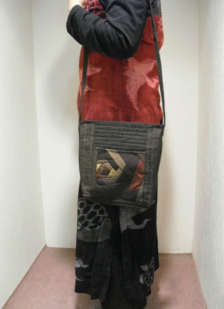 手のかかったパッチワークで独自のデザインにこだわりながら大島独特の光沢と柄を生かしました。