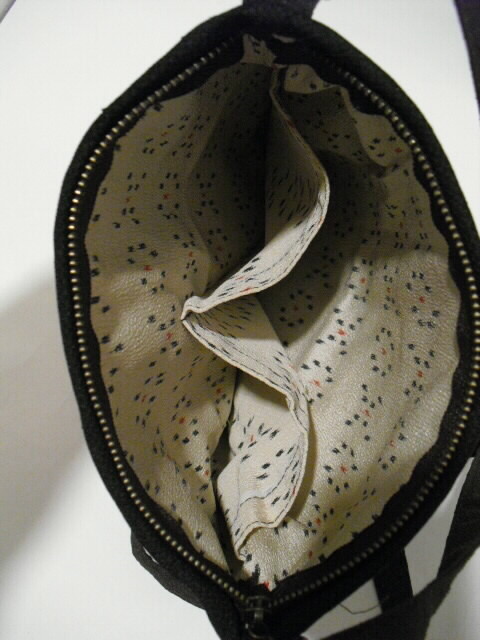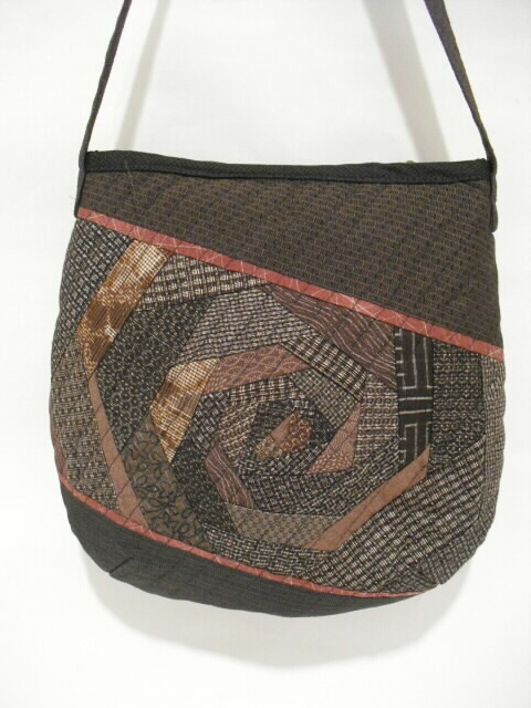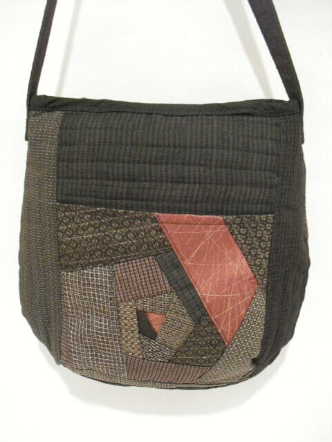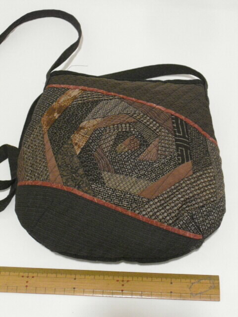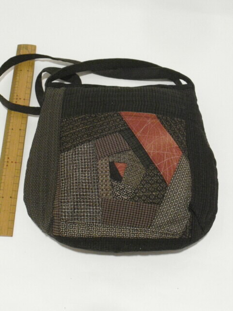 開閉はファスナー式です。芯は入っていますがふわふわした柔らかい手触りです。折り曲げる事も出来ますのでご旅行時のサブバッグとしても携行できます。高級着物素材『大島』を贅沢に使った周りの視線を惹きつける♪お洒落な手づくり一点モノのバックです。価格 6,500円