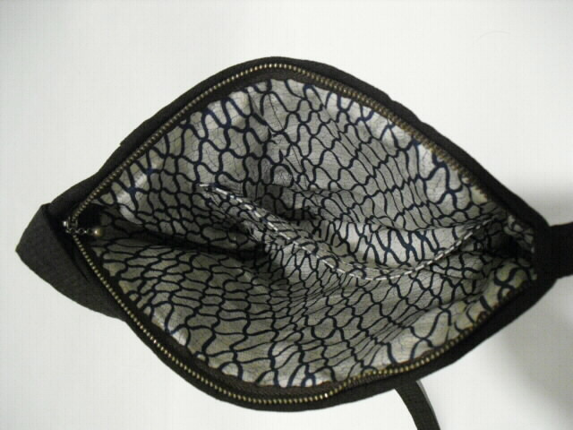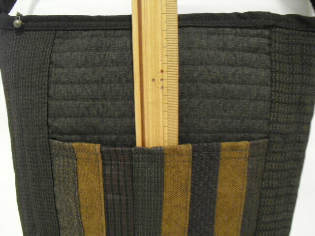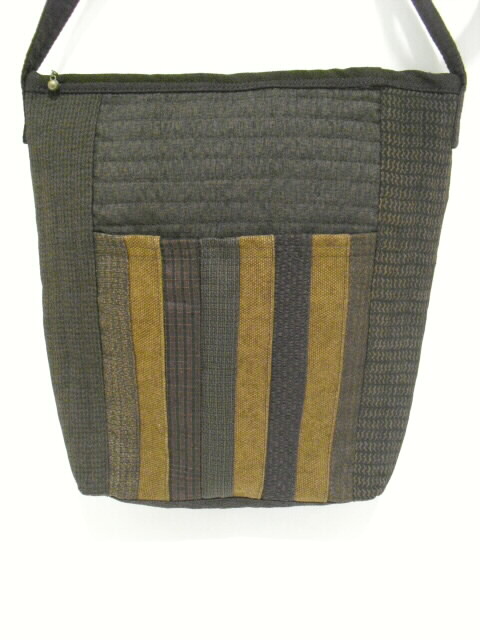 大島の着物をベースに数種類の古布の着物を組合わせて作ったショルダーバック(ポシェット)です。