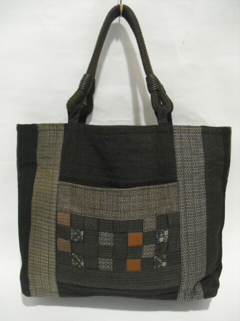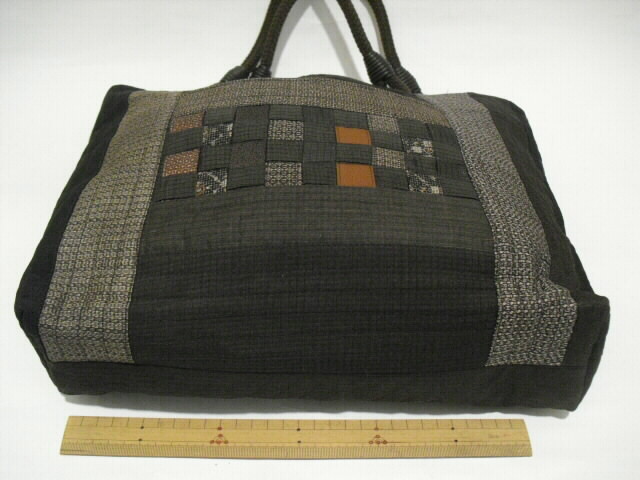 大島の着物をベースに数種類の古布の着物を組合わせて作った手さげバッグです。