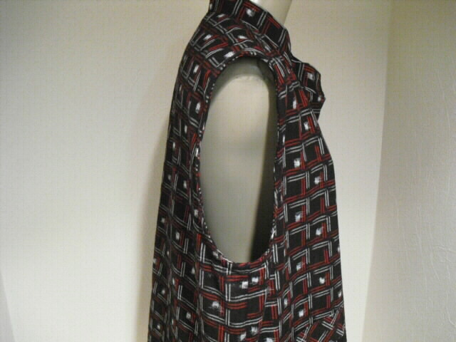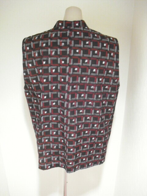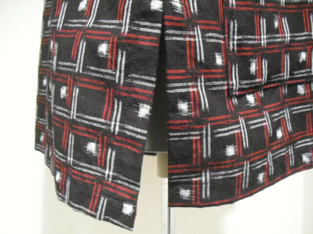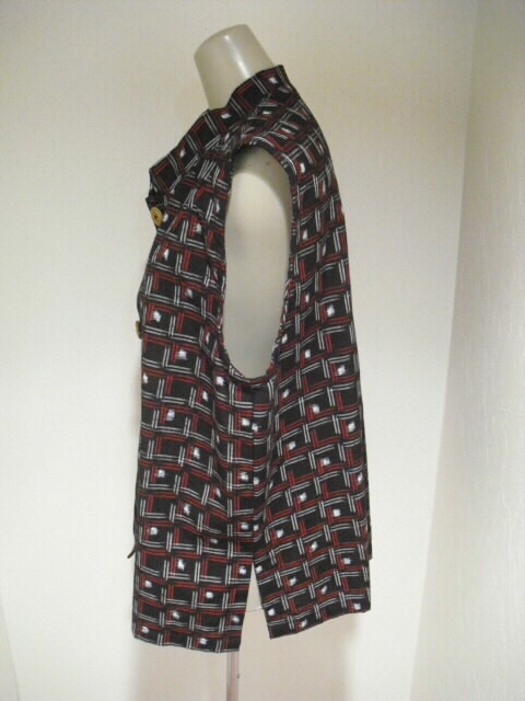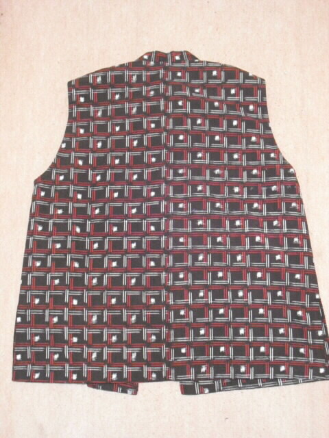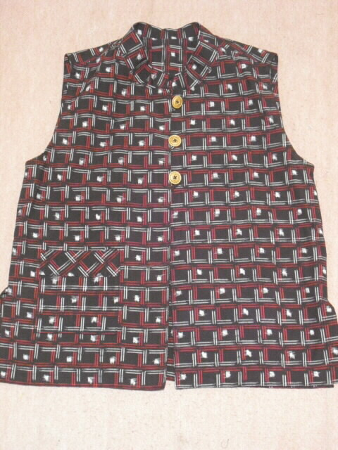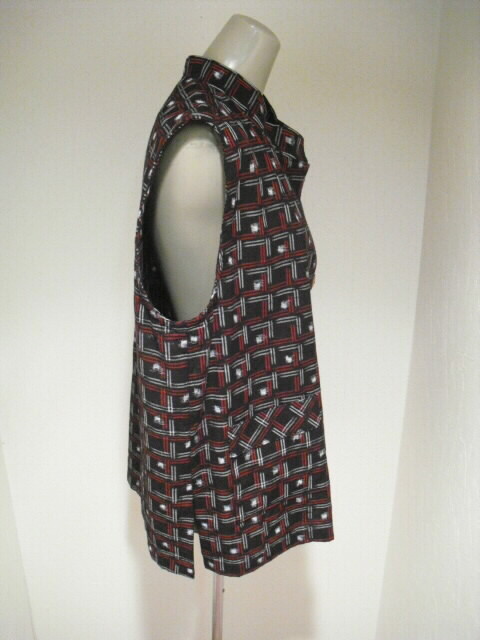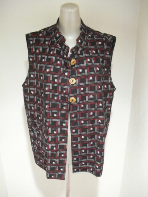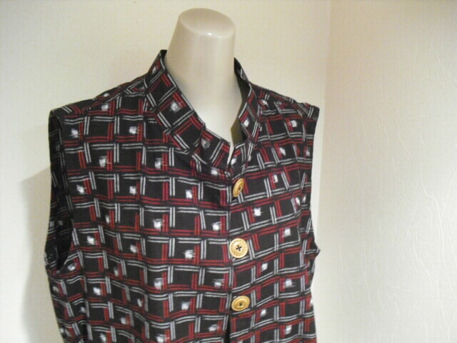 縦横に織られた赤色の絣糸で女性らしい可愛い雰囲気のベストに仕上がりました。