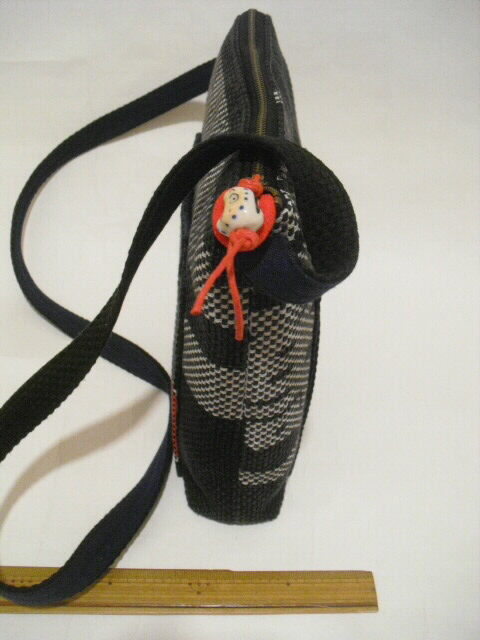 ファスナーに付けた陶器の「おかめ・ちょっとこ」の根付けが可愛いです。