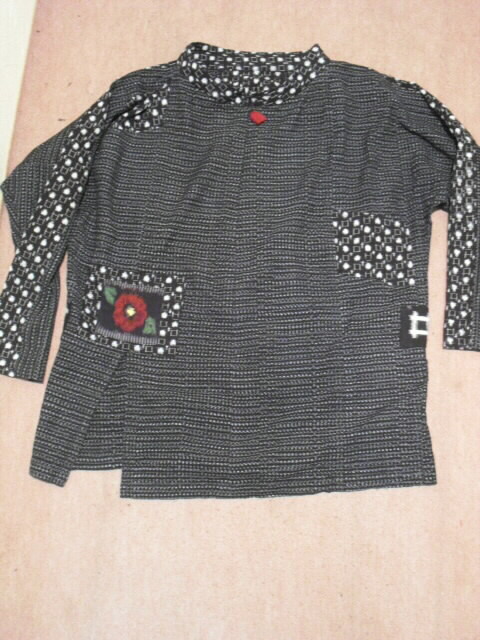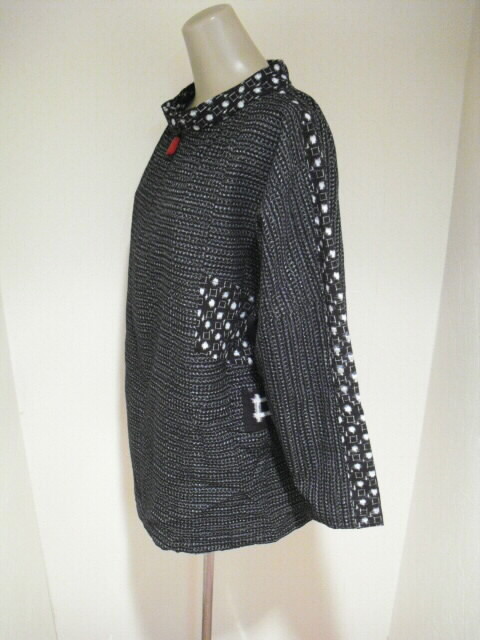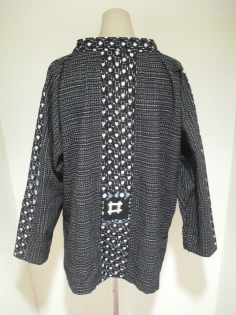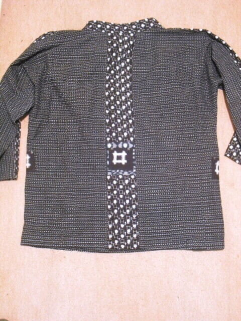絣の着物からお作りした衿付き長袖ブラウスです。