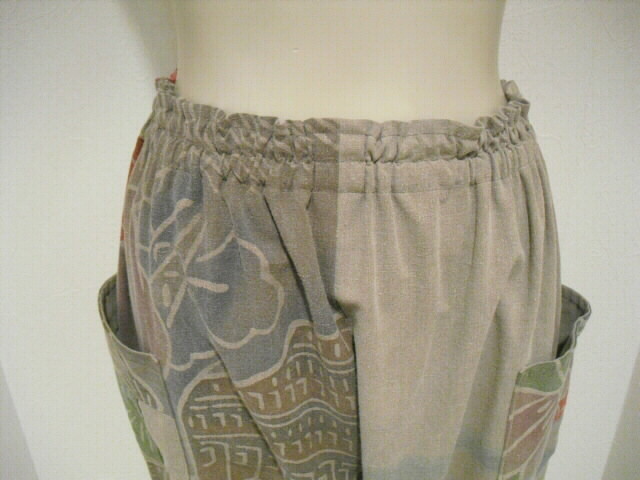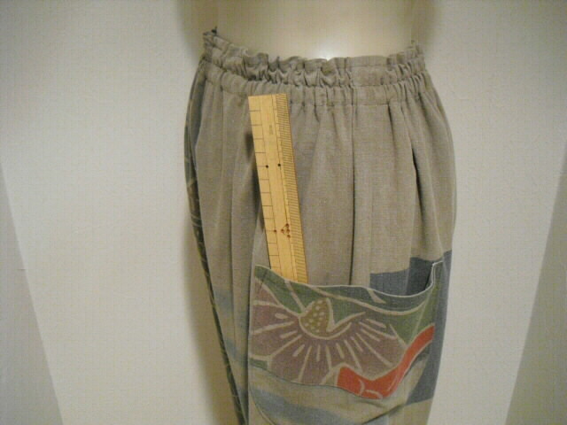 パンツのウエストは総ゴムで100cmまで伸びます。ポケットは2個。左右に深さ17cm×幅19cmが付いています。